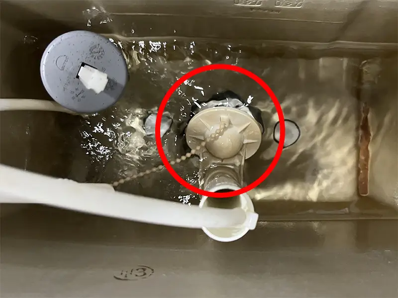 위에서 얘기했던 대로 플래퍼는 물탱크의 수위가 일정 수준 이하로 줄어들면 가라앉아 물구멍을 막습니다.