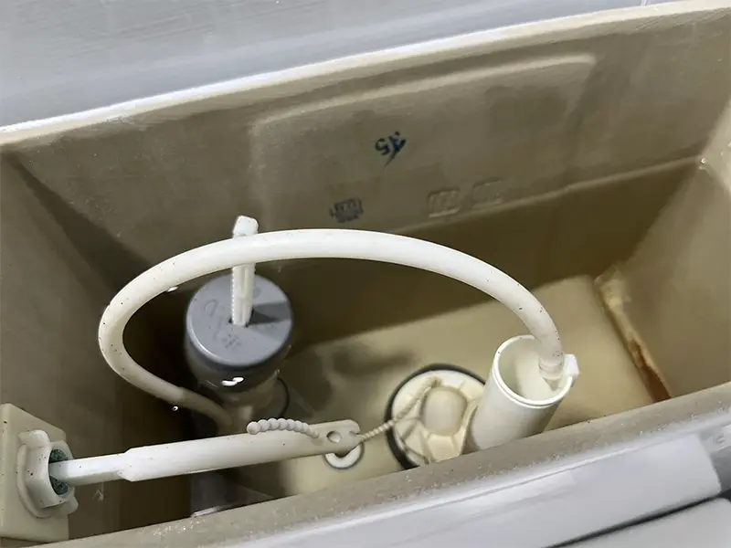 이 보충수 급수호스가 플러싱탑의 보충수관으로부터 이탈했거나 필밸브쪽 급수호스 연결부가 분리 혹은 파손된 경우 보충수가 공급되지 않아 봉수가 차오르지 않는 문제가 생깁니다.