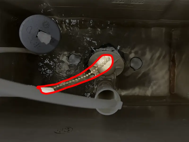 바로 이 부분을 이어주는 볼체인의 길이로 플래퍼가 부유하는 시간, 즉 물탱크가 닫히는 시간을 조절할 수 있습니다.